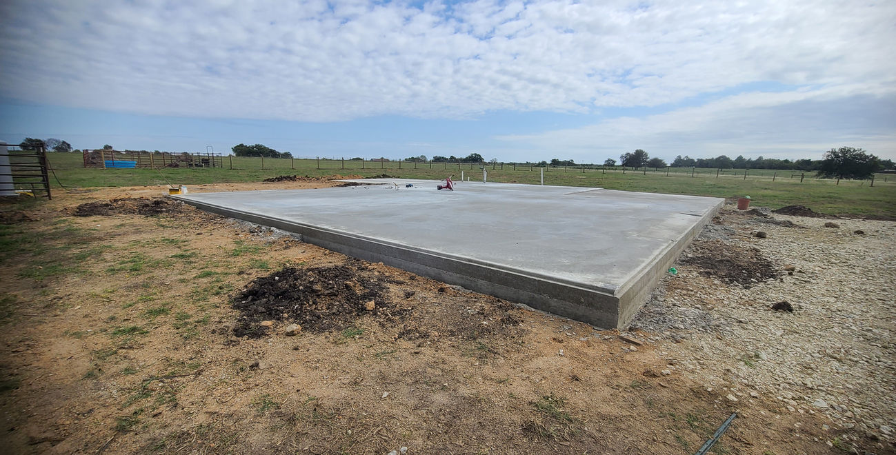 4000 PSI commercial concrete with 30 in x 12 in full perimeter beams and cross beams every 20 feet
