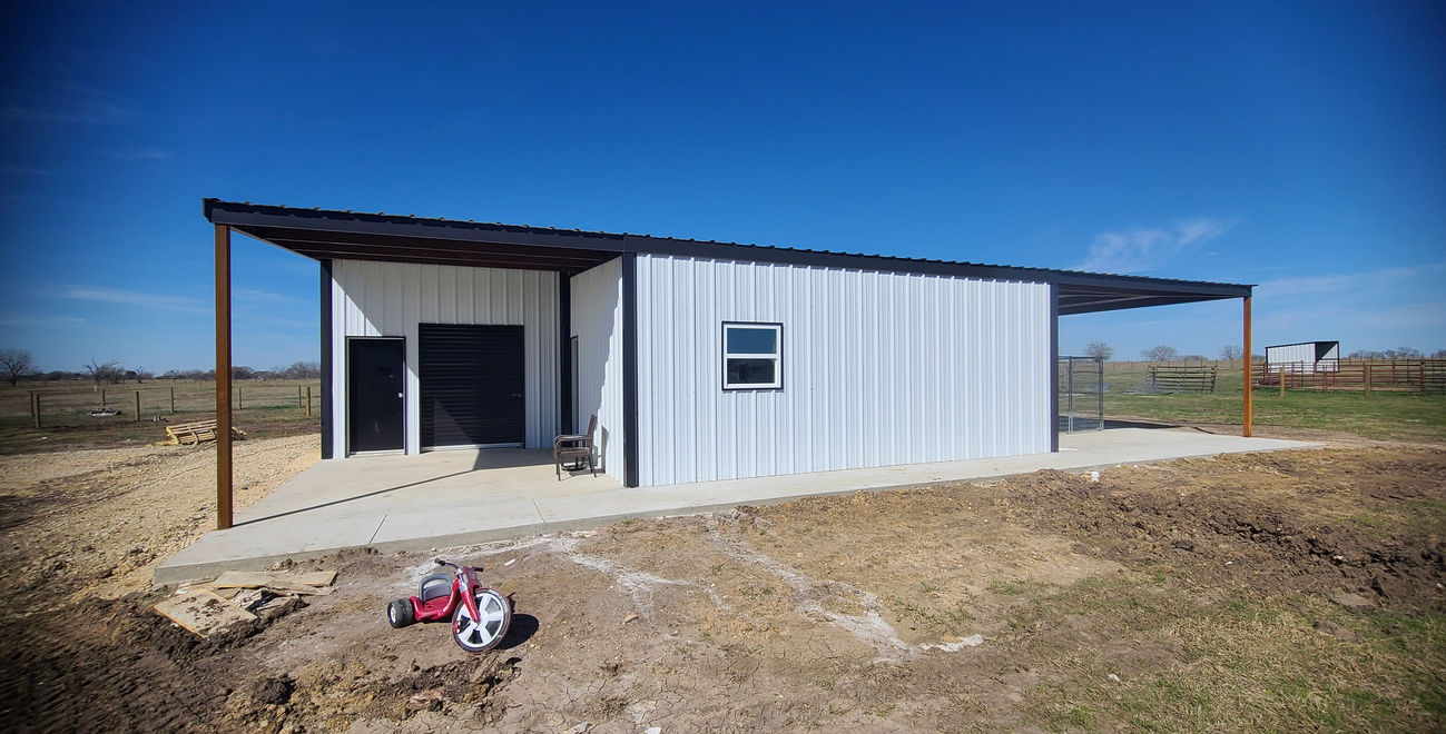 Full welded steel building consisting of 11 gauge red iron frame with ibeam trusses and 26 gauge walls and roof
